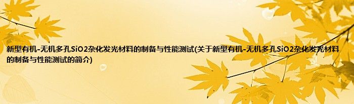 本文关于新型有机-无机多孔SiO2杂化发光材料的制备与性能测试的简介就讲解完毕,希望对大家有所帮助。