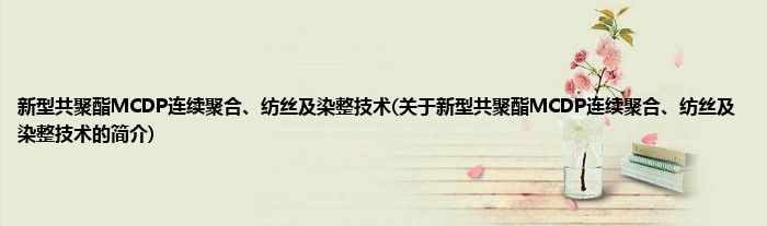 本文关于新型共聚酯MCDP连续聚合、纺丝及染整技术的简介就讲解完毕,希望对大家有所帮助。
