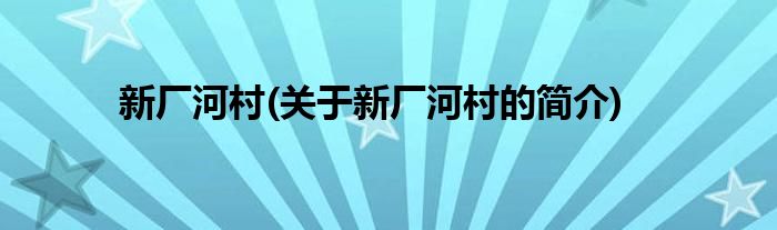 本文关于新厂河村的简介就讲解完毕,希望对大家有所帮助。
