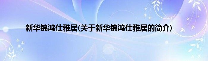 本文关于新华锦鸿仕雅居的简介就讲解完毕,希望对大家有所帮助。
