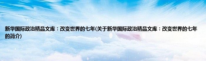 本文关于新华国际政治精品文库:改变世界的七年的简介就讲解完毕,希望对大家有所帮助。