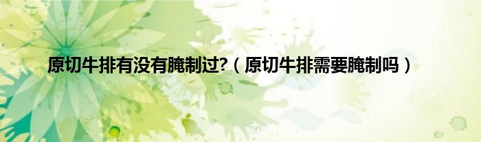 大家好,小科来为大家解答以上问题。原切牛排有没有腌制过?,原切牛排需要腌制吗很多人还不知道,现在让我们一起来看看吧!