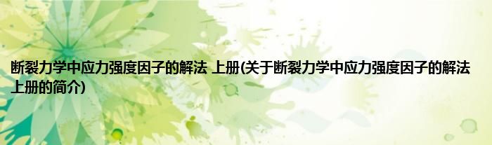 本文关于断裂力学中应力强度因子的解法 上册的简介就讲解完毕,希望对大家有所帮助。