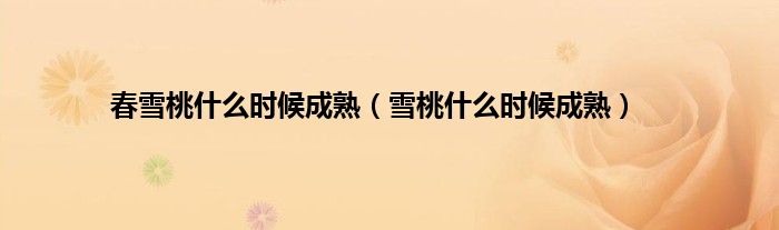 大家好,小科来为大家解答以上问题。春雪桃什么时候成熟,雪桃什么时候成熟很多人还不知道,现在让我们一起来看看吧!
