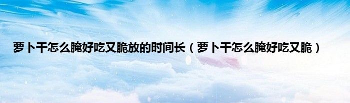 大家好,小科来为大家解答以上问题。萝卜干怎么腌好吃又脆放的时间长,萝卜干怎么腌好吃又脆很多人还不知道,现在让我们一起来看看吧!