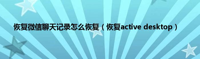 大家好,精选小编来为大家解答以上问题。恢复微信聊天记录怎么恢复,恢复active desktop很多人还不知道,现在让我们一起来看看吧!