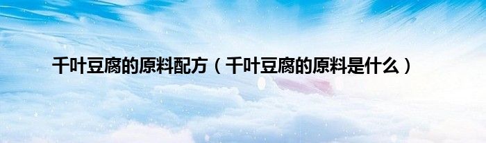 大家好,小常来为大家解答以上问题。千叶豆腐的原料配方,千叶豆腐的原料是什么很多人还不知道,现在让我们一起来看看吧!