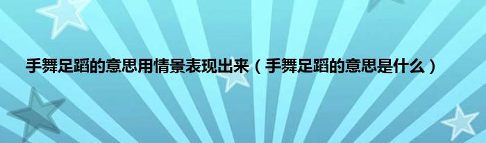 大家好,小常来为大家解答以上问题。手舞足蹈的意思用情景表现出来,手舞足蹈的意思是什么很多人还不知道,现在让我们一起来看看吧!