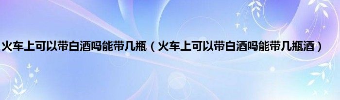 大家好,小科来为大家解答以上问题。火车上可以带白酒吗能带几瓶,火车上可以带白酒吗能带几瓶酒很多人还不知道,现在让我们一起来看看吧!