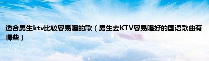 大家好,小常来为大家解答以上问题。适合男生ktv比较容易唱的歌,男生去KTV容易唱好的国语歌曲有哪些很多人还不知道,现在让我们一起来看看吧!