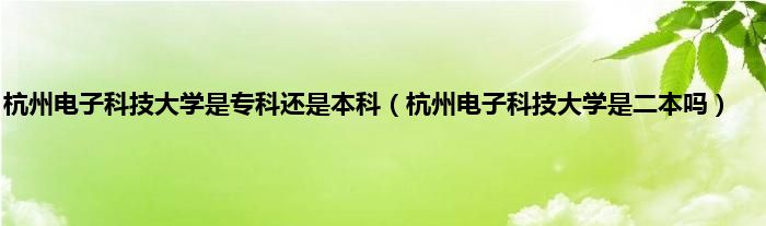 大家好,小常来为大家解答以上问题。杭州电子科技大学是专科还是本科,杭州电子科技大学是二本吗很多人还不知道,现在让我们一起来看看吧!