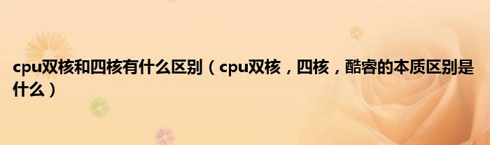 大家好,小常来为大家解答以上问题。cpu双核和四核有什么区别,cpu双核,四核,酷睿的本质区别是什么很多人还不知道,现在让我们一起来看看吧!