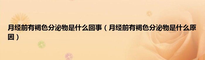 大家好,小科来为大家解答以上问题。月经前有褐色分泌物是什么回事,月经前有褐色分泌物是什么原因很多人还不知道,现在让我们一起来看看吧!