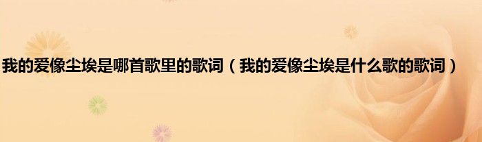 大家好,小常来为大家解答以上问题。我的爱像尘埃是哪首歌里的歌词,我的爱像尘埃是什么歌的歌词很多人还不知道,现在让我们一起来看看吧!