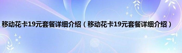 移动花卡19元套餐详细介绍(移动花卡19元套餐详细介绍)
