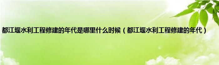 大家好,小常来为大家解答以上问题。都江堰水利工程修建的年代是哪里什么时候,都江堰水利工程修建的年代很多人还不知道,现在让我们一起来看看吧!