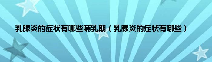 大家好,小科来为大家解答以上问题。乳腺炎的症状有哪些哺乳期,乳腺炎的症状有哪些很多人还不知道,现在让我们一起来看看吧!