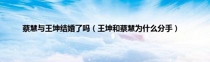 大家好,小常来为大家解答以上问题。蔡慧与王坤结婚了吗,王坤和蔡慧为什么分手很多人还不知道,现在让我们一起来看看吧!