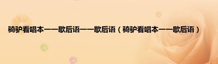 大家好,小常来为大家解答以上问题。骑驴看唱本一一歇后语一一歇后语,骑驴看唱本一一歇后语很多人还不知道,现在让我们一起来看看吧!