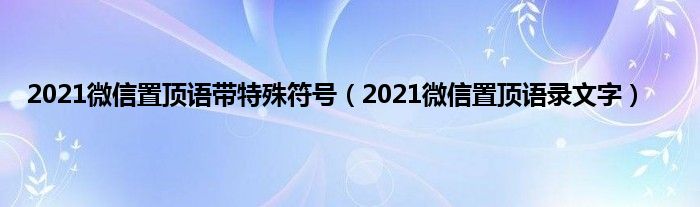 大家好,小常来为大家解答以上问题。2021微信置顶语带特殊符号,2021微信置顶语录文字很多人还不知道,现在让我们一起来看看吧!