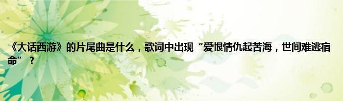 大家好,小常来为大家解答以上问题。《大话西游》的片尾曲是什么,歌词中出现“爱恨情仇起苦海,世间难逃宿命”?很多人还不知道,现在让我们一起来看看吧!