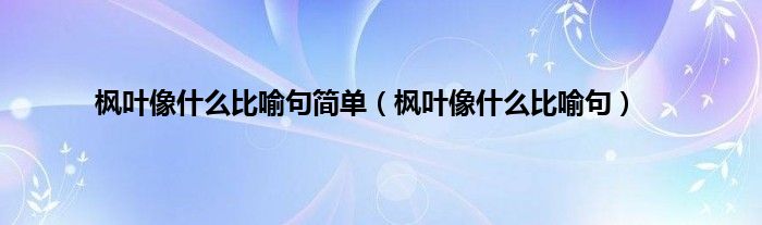 大家好,小常来为大家解答以上问题。枫叶像什么比喻句简单,枫叶像什么比喻句很多人还不知道,现在让我们一起来看看吧!
