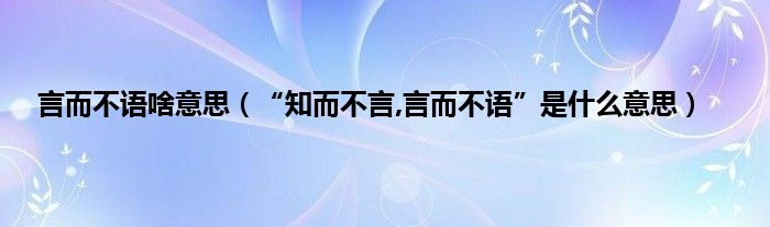 大家好,小常来为大家解答以上问题。言而不语啥意思,“知而不言,言而不语”是什么意思很多人还不知道,现在让我们一起来看看吧!