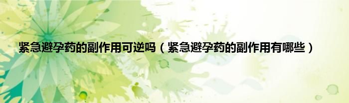 大家好,小科来为大家解答以上问题。紧急避孕药的副作用可逆吗,紧急避孕药的副作用有哪些很多人还不知道,现在让我们一起来看看吧!