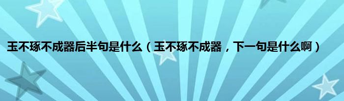 大家好,小常来为大家解答以上问题。玉不琢不成器后半句是什么,玉不琢不成器,下一句是什么啊很多人还不知道,现在让我们一起来看看吧!