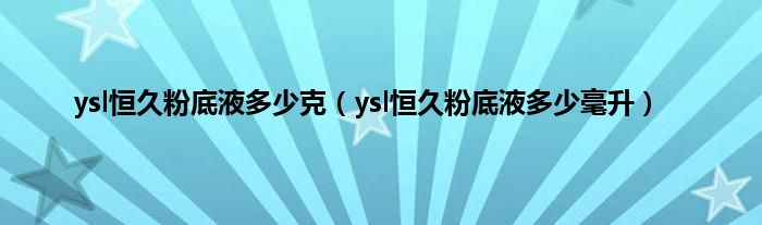 大家好,小科来为大家解答以上问题。ysl恒久粉底液多少克,ysl恒久粉底液多少毫升很多人还不知道,现在让我们一起来看看吧!