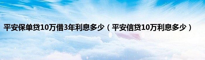 大家好,小常来为大家解答以上问题。平安保单贷10万借3年利息多少,平安信贷10万利息多少很多人还不知道,现在让我们一起来看看吧!