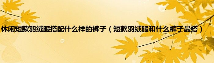 大家好,小科来为大家解答以上问题。休闲短款羽绒服搭配什么样的裤子,短款羽绒服和什么裤子最搭很多人还不知道,现在让我们一起来看看吧!