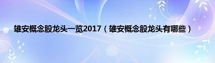 大家好,小常来为大家解答以上问题。雄安概念股龙头一览2017,雄安概念股龙头有哪些很多人还不知道,现在让我们一起来看看吧!