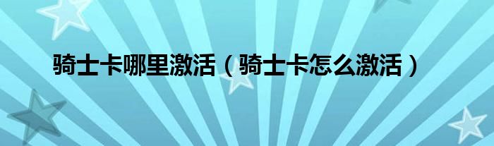 大家好,小常来为大家解答以上问题。骑士卡哪里激活,骑士卡怎么激活很多人还不知道,现在让我们一起来看看吧!