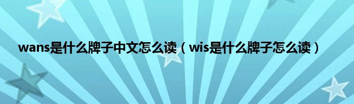 大家好,小科来为大家解答以上问题。wans是什么牌子中文怎么读,wis是什么牌子怎么读很多人还不知道,现在让我们一起来看看吧!