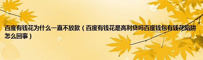 大家好,小常来为大家解答以上问题。百度有钱花为什么一直不放款,百度有钱花是高利贷吗百度钱包有钱花陷阱怎么回事很多人还不知道,现在让我们一起来看看吧!
