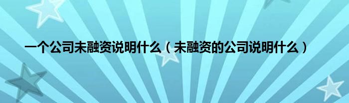 大家好,小常来为大家解答以上问题。一个公司未融资说明什么,未融资的公司说明什么很多人还不知道,现在让我们一起来看看吧!