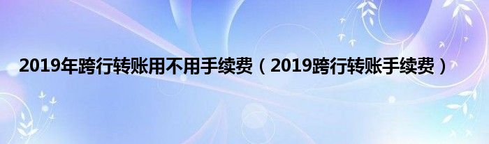 大家好,小常来为大家解答以上问题。2019年跨行转账用不用手续费,2019跨行转账手续费很多人还不知道,现在让我们一起来看看吧!