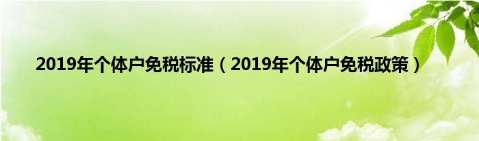 大家好,小常来为大家解答以上问题。2019年个体户免税标准,2019年个体户免税政策很多人还不知道,现在让我们一起来看看吧!