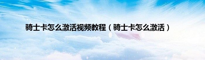 大家好,小常来为大家解答以上问题。骑士卡怎么激活视频教程,骑士卡怎么激活很多人还不知道,现在让我们一起来看看吧!