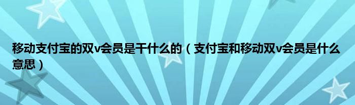 大家好,小常来为大家解答以上问题。移动支付宝的双v会员是干什么的,支付宝和移动双v会员是什么意思很多人还不知道,现在让我们一起来看看吧!