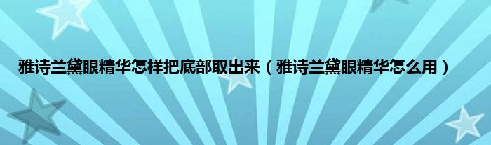 大家好,小科来为大家解答以上问题。雅诗兰黛眼精华怎样把底部取出来,雅诗兰黛眼精华怎么用很多人还不知道,现在让我们一起来看看吧!