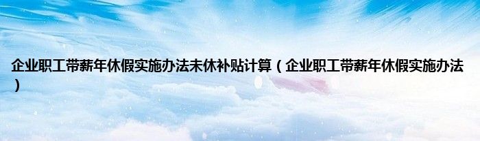 大家好,小常来为大家解答以上问题。企业职工带薪年休假实施办法未休补贴计算,企业职工带薪年休假实施办法很多人还不知道,现在让我们一起来看看吧!