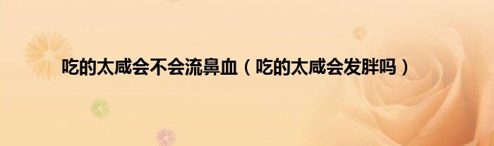 大家好,小科来为大家解答以上问题。吃的太咸会不会流鼻血,吃的太咸会发胖吗很多人还不知道,现在让我们一起来看看吧!