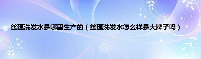 大家好,小科来为大家解答以上问题。丝蕴洗发水是哪里生产的,丝蕴洗发水怎么样是大牌子吗很多人还不知道,现在让我们一起来看看吧!