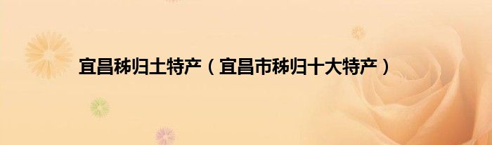 大家好,小常来为大家解答以上问题。宜昌秭归土特产,宜昌市秭归十大特产很多人还不知道,现在让我们一起来看看吧!
