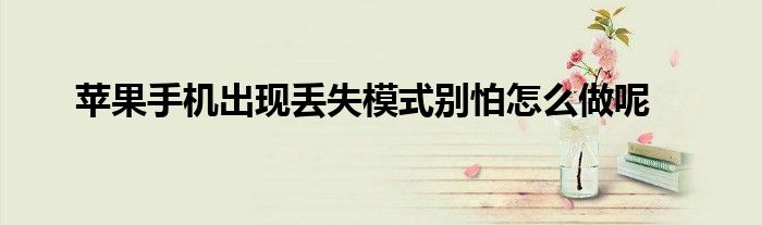 现在大家使用手机的频率越来越频繁,手机也为我们提供了许多的便利,今天小编也来说一下这个苹果手机出现丢失模式别怕怎么做呢文章,这个操作其实不复杂,接下来就给大家介绍一下苹果手机出现丢失模式别怕怎么做呢来看看吧:
