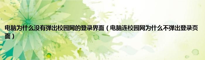 大家好,小常来为大家解答以上问题。电脑为什么没有弹出校园网的登录界面,电脑连校园网为什么不弹出登录页面很多人还不知道,现在让我们一起来看看吧!