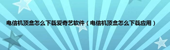 大家好,小常来为大家解答以上问题。电信机顶盒怎么下载爱奇艺软件,电信机顶盒怎么下载应用很多人还不知道,现在让我们一起来看看吧!