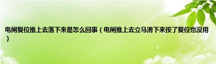大家好,小常来为大家解答以上问题。电闸复位推上去落下来是怎么回事,电闸推上去立马滑下来按了复位也没用很多人还不知道,现在让我们一起来看看吧!